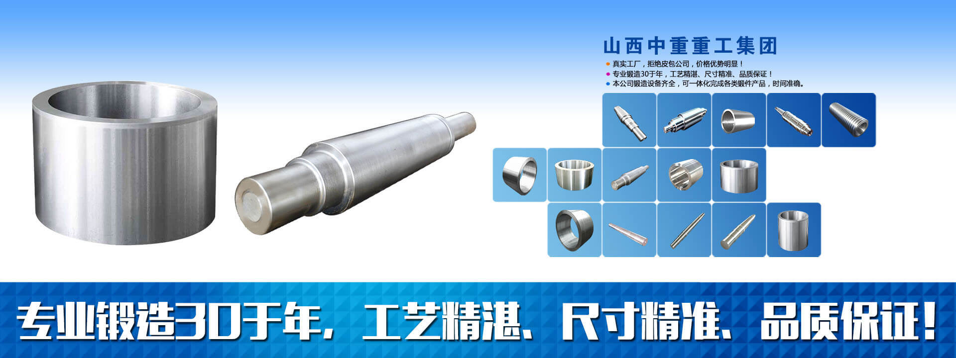 山西中重重工集團秉承認真做事、用心服務,是一家專業鍛造加工生產鍛件的企業。公司所有產品均可按照圖紙、化學成分生產,自由鍛、模鍛、粗加工、熱處理、精加工一體化完成。長期與起重機、石油、化工、礦山、冶金、液壓、焦化、火車、工程機械等企業合作。配套生產車輪、滑輪、鏈輪、齒輪、齒圈、環件、筒類、軸類、缸體、方塊、模塊、支撐座、法蘭等鍛件產品。